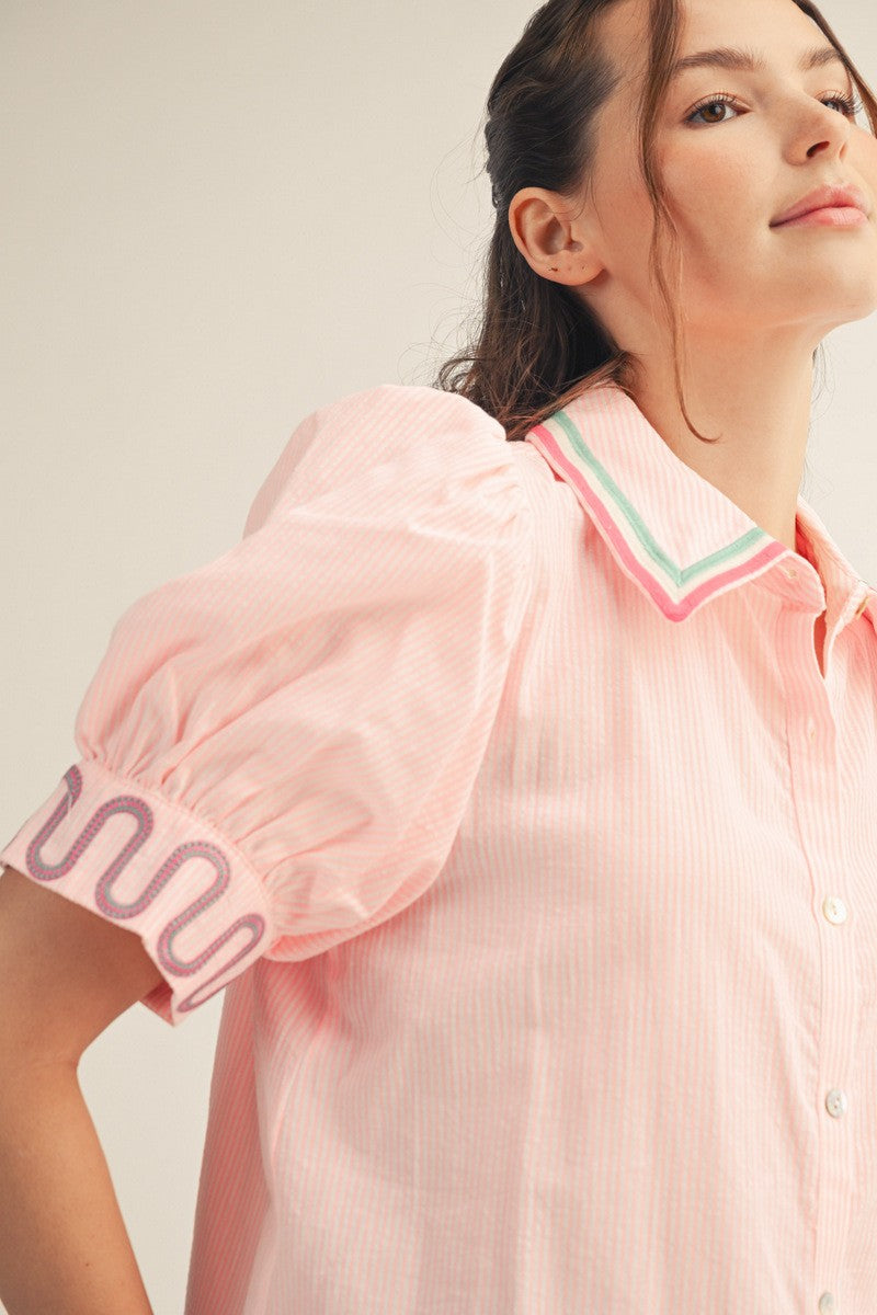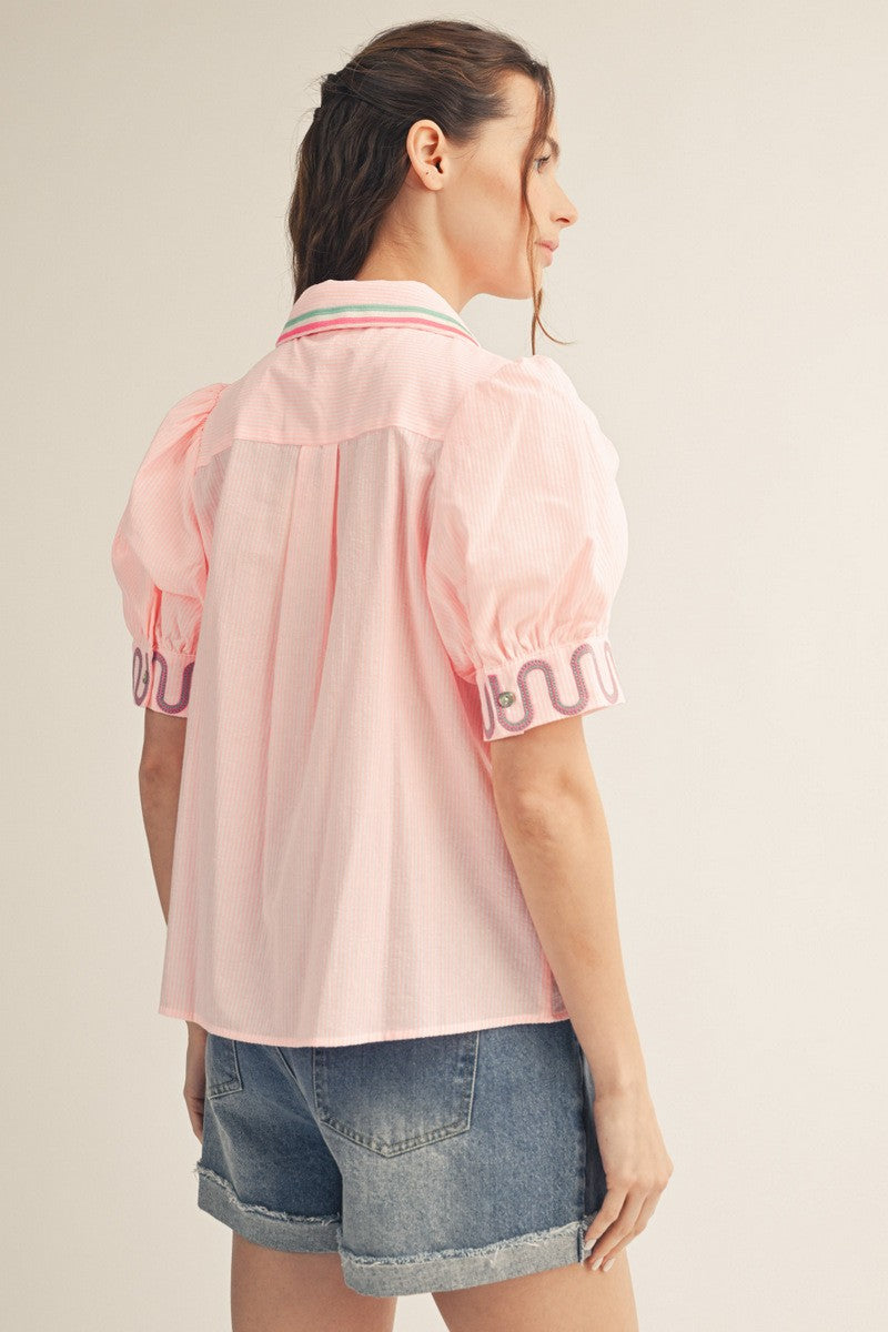 • Embroidery on sleeves and collar