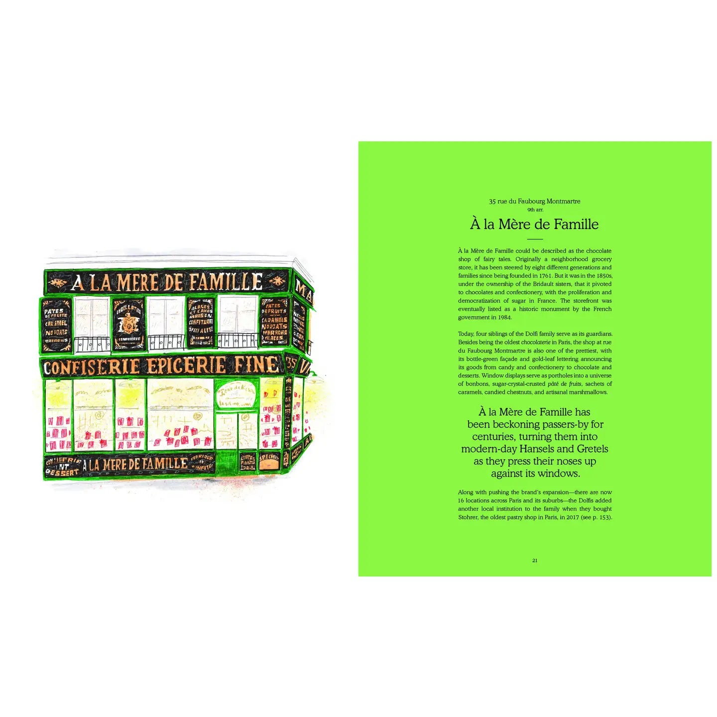 Brimming with joie de vivre and delightful detail, this journey through Paris’s neighborhoods captures two hundred intriguing storefronts that help make the city a shopper’s and tourist’s paradise. As in his previous books illustrating the shops of New York City and London, Joel Holland offers the unique perspective of a traveler on foot. Paris-based journalist Vivian Song’s text provides an insider’s perspective as to why each location is worthy of a stop on any itinerary.